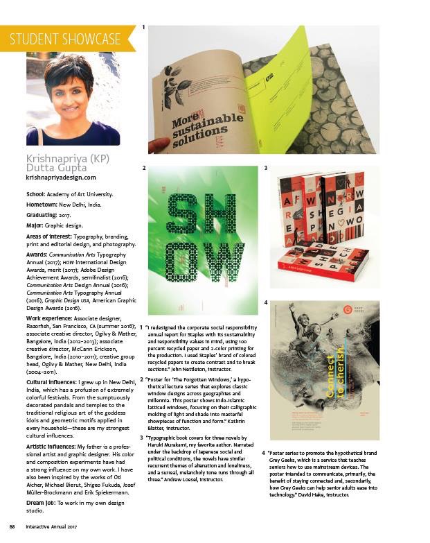 CA Student Showcase 2017 I was so excited to receive this copy with my profile page. I feel honored to see my profile among the best. Krishnapriya Dutta guptaApril 21, 2017 Facebook0 Twitter LinkedIn0 Reddit Tumblr 0 Likes